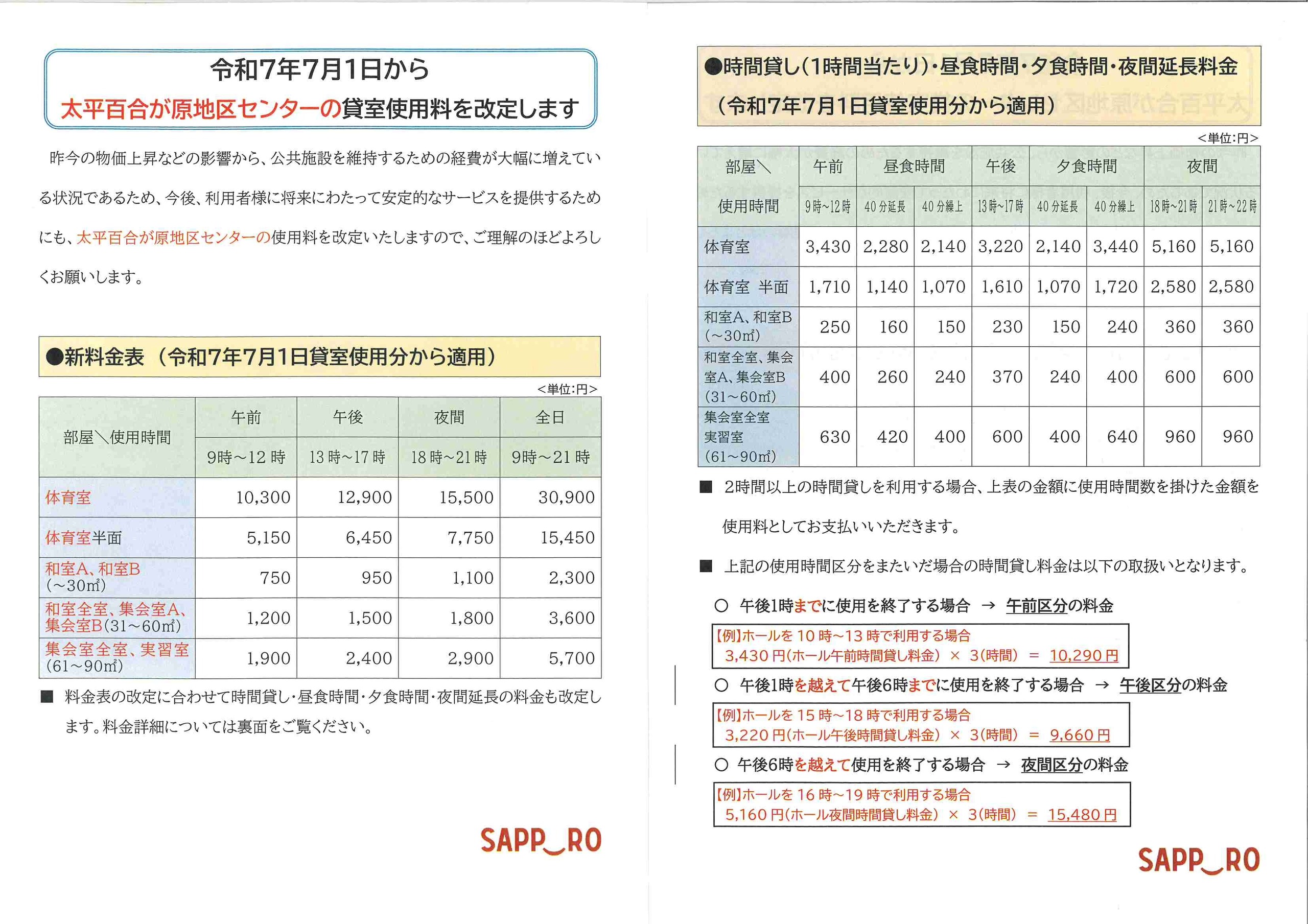 改定後の使用料につきましては、札幌市ホームページにも詳細が掲載されております(下部のリンク「詳しくはこちら」からご確認いただけます)